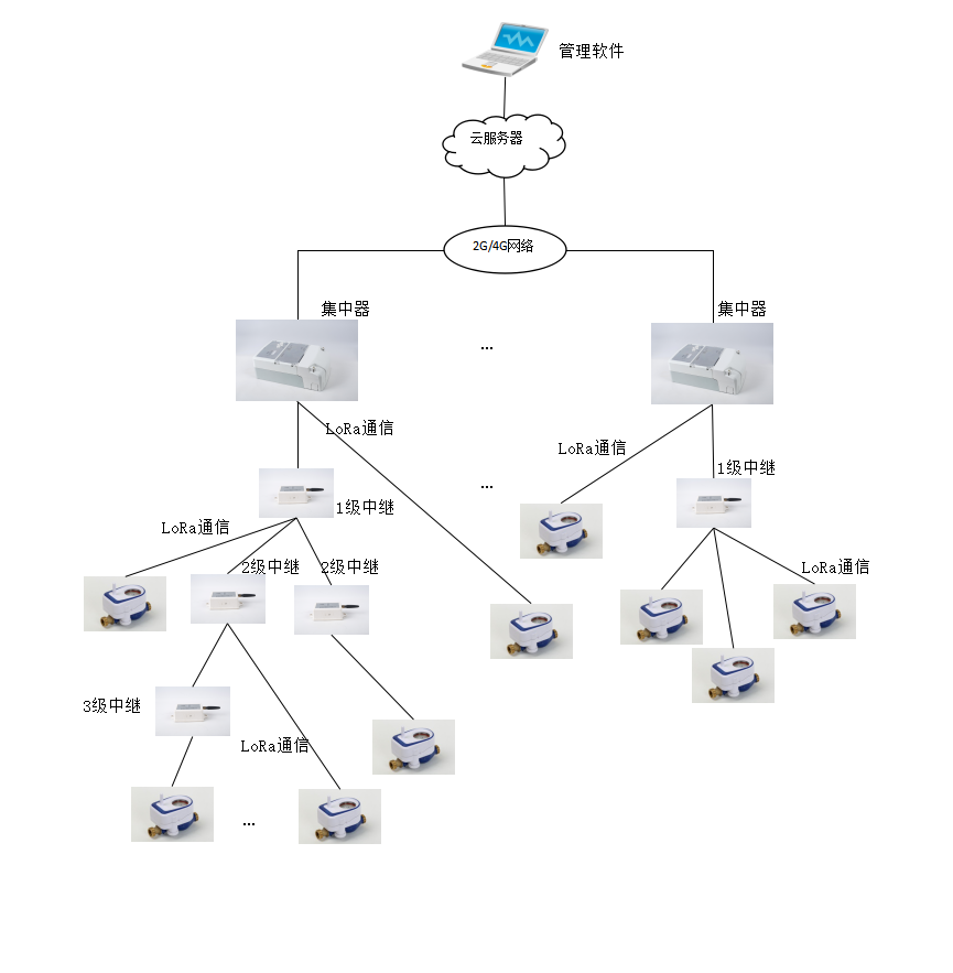 集中器水表抄表系統(tǒng)是本公司為XX客戶(hù)特別定制的抄表系統(tǒng),無(wú)需布線(xiàn),方便抄表。可實(shí)現(xiàn)遠(yuǎn)程抄表、閥門(mén)控制等功能。根據(jù)水表安裝環(huán)境,此方案增加了***多4級(jí)中繼來(lái)保證水表與集中器之間正常通信。